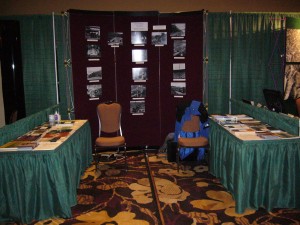Many people stopped by the booth with stories to tell, rather than objects to share.  Others were attracted to the selection of gorgeous photo reproductions from the Wilmer Gold collection, courtesy of the Kaatza Station Museum and Archives, that Stan and I posted on our booth’s back wall.  Still others wanted to browse through the collection of books from Stan’s private library that we scattered on the tables to either side of the display space.