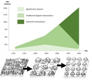 These landscape changes inform us about the shifting management and production patterns in olives, as well as the slow process of domestication of agriculture, from a lower human impact to the industrial systems of today. In preindustrial contexts, an intensification in olive grove production resulted mainly from increasing population pressure and new market opportunities. Industrialization during the 1960s initiated the strong decoupling of land-use and production (Figure 3).